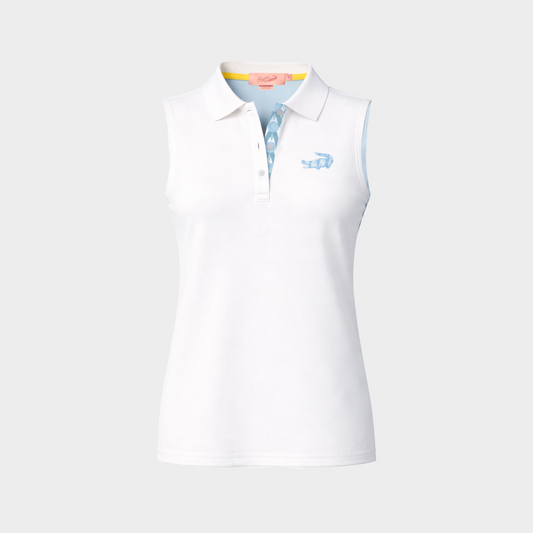 WHITE WOMEN TAPERED FIT SLEEVELESS POLO WITH EMBROIDERY