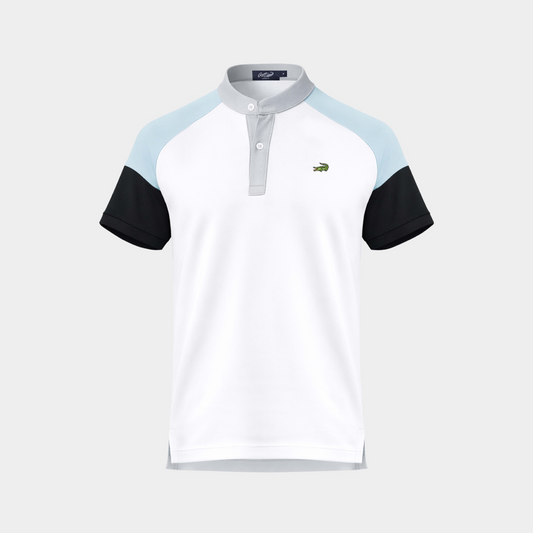 BOMBER COLLAR COLOUR BLOCK CUSTOM FIT POLO SHIRT