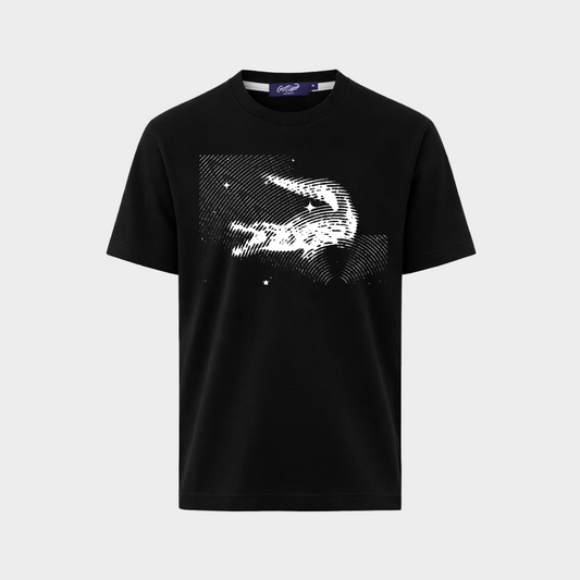BLACK CUSTOM FIT CREW NECK SHORT SLEEVE T-SHIRT WITH GRAPHIC PRINT