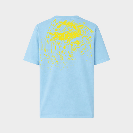 STARLIGHT BLUE OVERSIZED FIT CREW NECK SHORT SLEEVE T-SHIRT WITH GRAPHIC PRINT