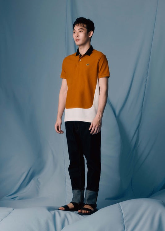 PUMPKIN SPICE COLOUR BLOCK CUSTOM FIT POLO SHIRT WITH BLACK COLLAR