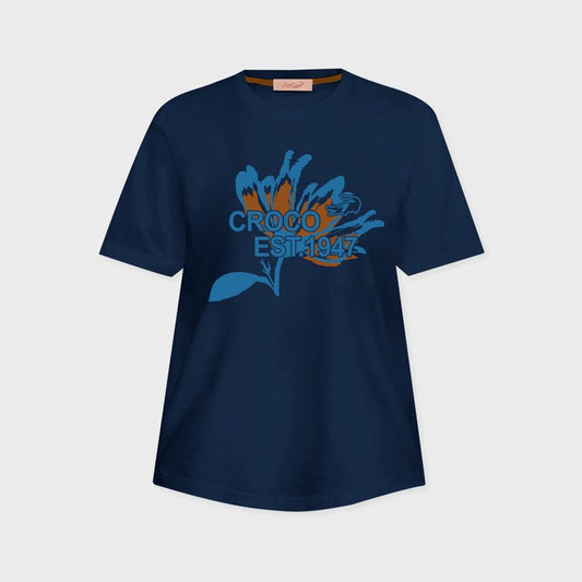 NAVY OVERSIZED FIT CREW NECK SHORT SLEEVE T-SHIRT WITH GRAPHIC PRINT