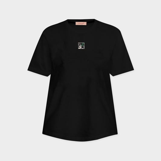 BLACK OVERSIZED FIT CREW NECK SHORT SLEEVE T-SHIRT WITH EMBROIDERY