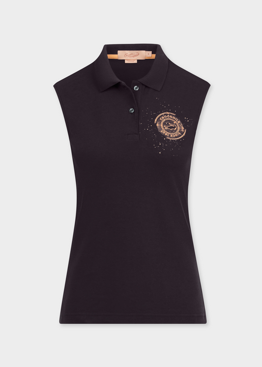 MIDNIGHT PLUM WOMEN TAPERED FIT SLEEVELESS POLO WITH EMBROIDERY