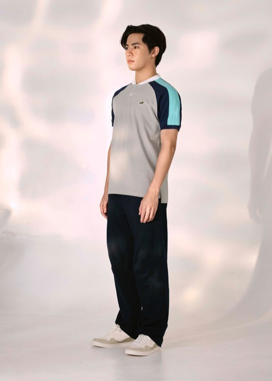 GREY COLOUR BLOCK BOMBER COLLAR CUSTOM FIT POLO SHIRT