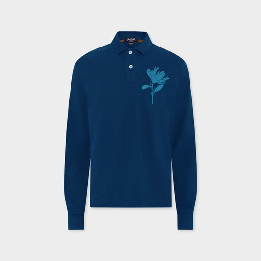 NAVY CUSTOM FIT LONG SLEEVE POLO SHIRT WITH GRAPHIC PRINT