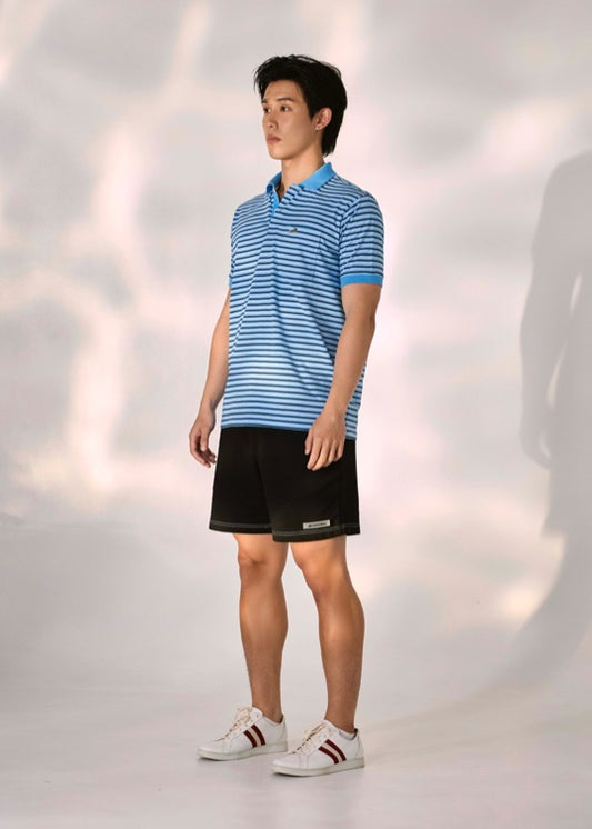 AZURE BLUE STRIPE SLIM FIT POLO SHIRT