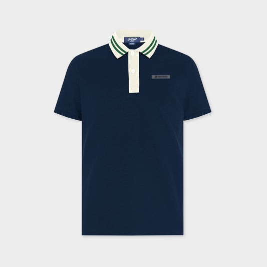 NAVY CUSTOM FIT POLO SHIRT WITH STRIPE COLLAR AND RUBBERIZED LOGO
