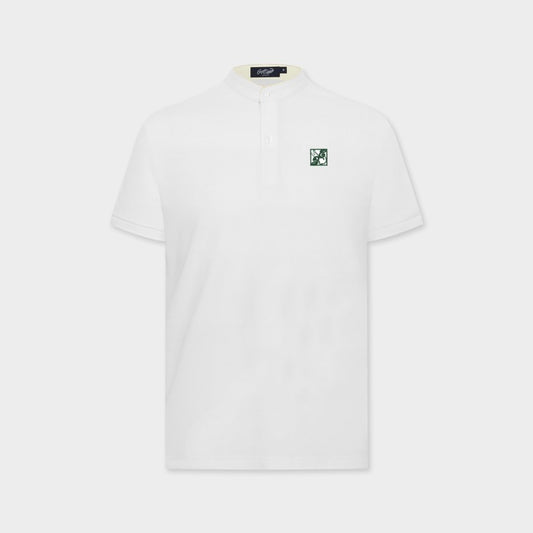 WHITE MANDARIN COLLAR CUSTOM FIT POLO SHIRT WITH EMBROIDERY