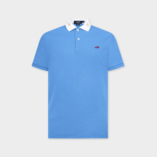 AZURE BLUE CUSTOM FIT POLO SHIRT WITH WHITE COLLAR AND EMBROIDERY