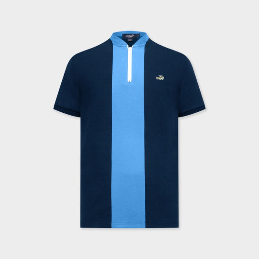 NAVY COLOUR BLOCK BOMBER COLLAR CUSTOM FIT POLO SHIRT WITH ZIP PLACKET