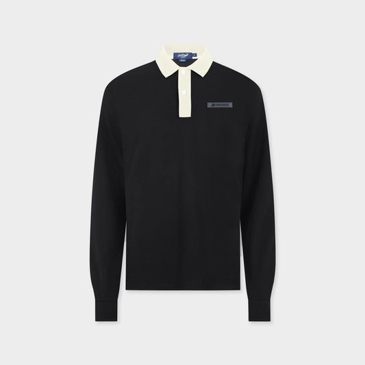 BLACK CUSTOM FIT LONG SLEEVE POLO SHIRT WITH UNBLEACHED COTTON COLLAR AND RUBBERIZED LOGO