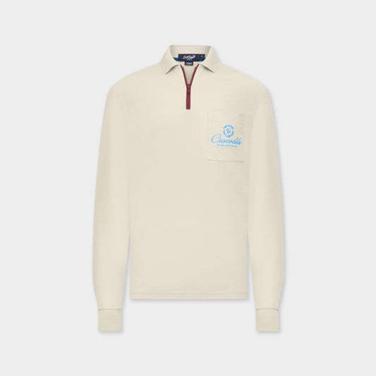 BEIGE CUSTOM FIT LONG SLEEVE POLO SHIRT WITH POCKET AND ZIP PLACKET