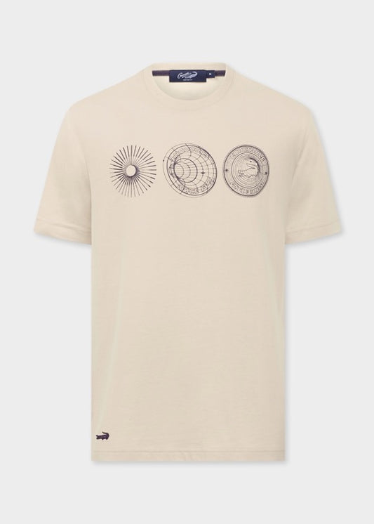 BEIGE CUSTOM FIT CREW NECK SHORT SLEEVE T-SHIRT WITH GRAPHIC PRINT