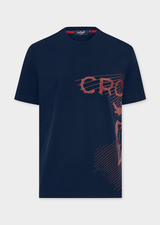NAVY CUSTOM FIT CREW NECK SHORT SLEEVE T-SHIRT WITH GRAPHIC PRINT