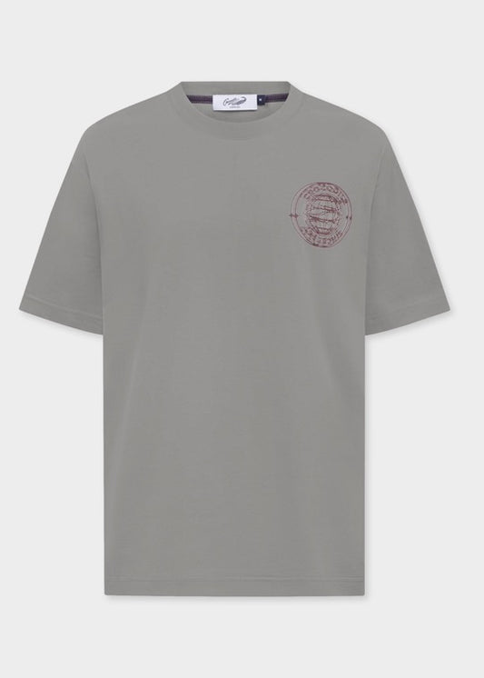 GREY OVERSIZED FIT CREW NECK SHORT SLEEVE T-SHIRT WITH GRAPHIC PRINT