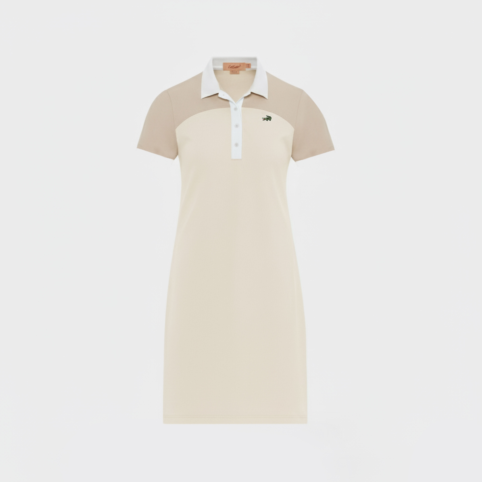 BEIGE COLOUR BLOCK ATHLETIC LENGTH DRESS