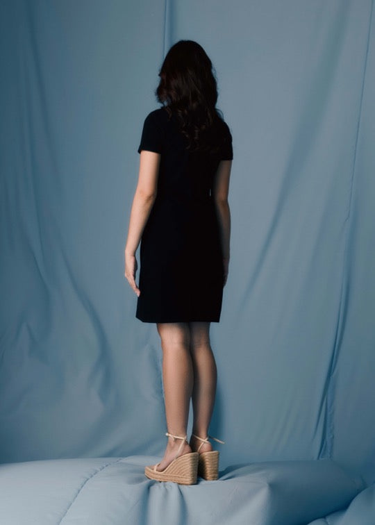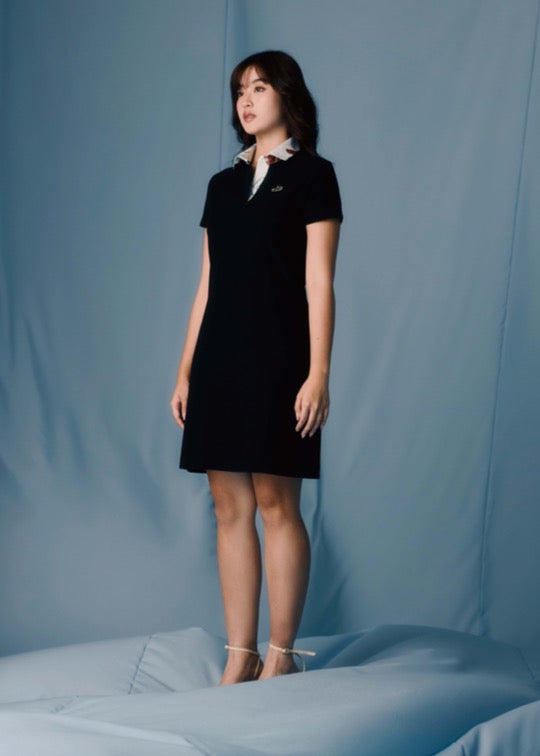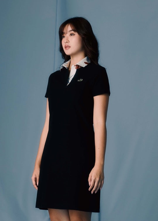 BLACK ATHLETIC LENGTH DRESS WITH FABRIC PRINT COLLAR