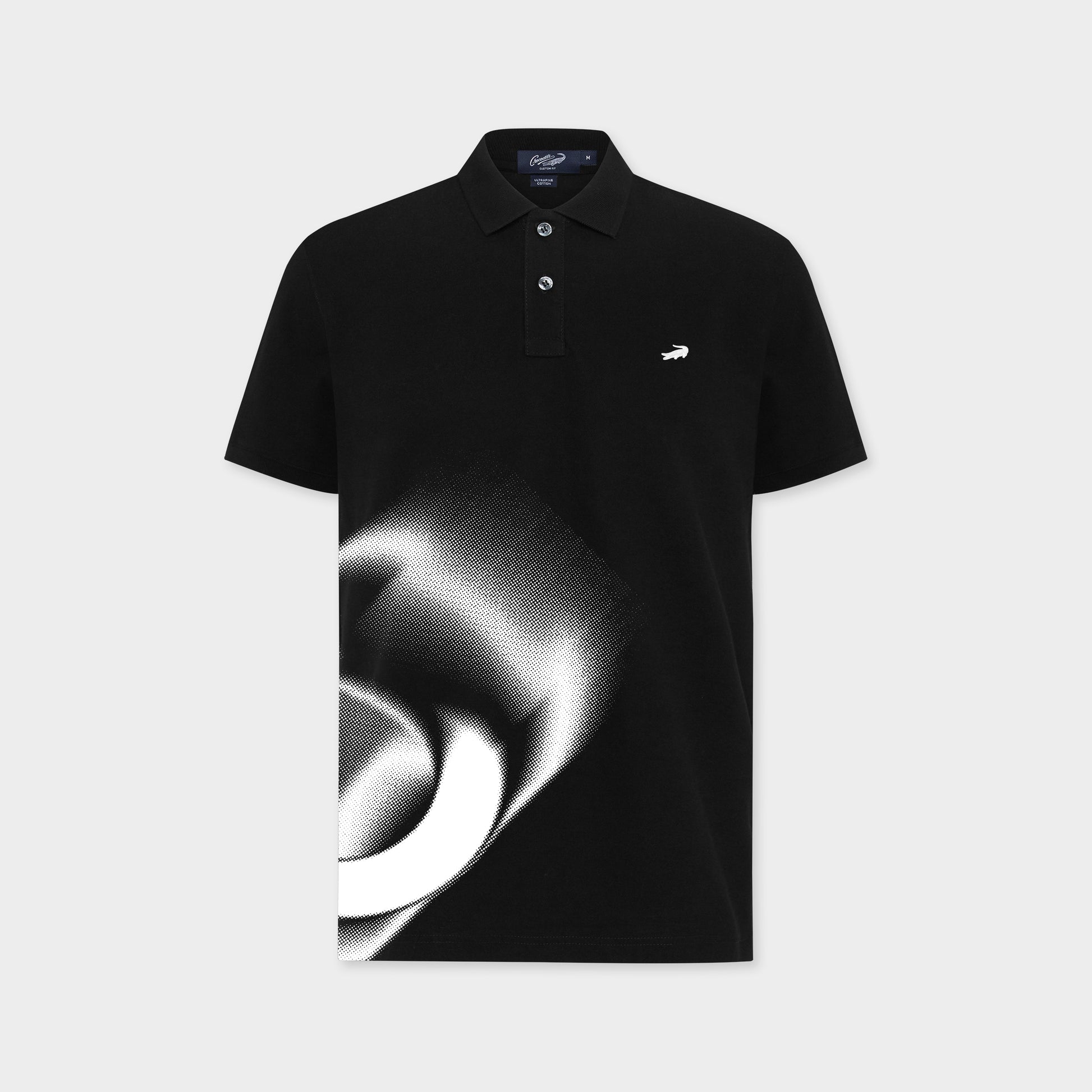BLACK CUSTOM FIT POLO SHIRT WITH EMBROIDERY AND GRAPHIC PRINT