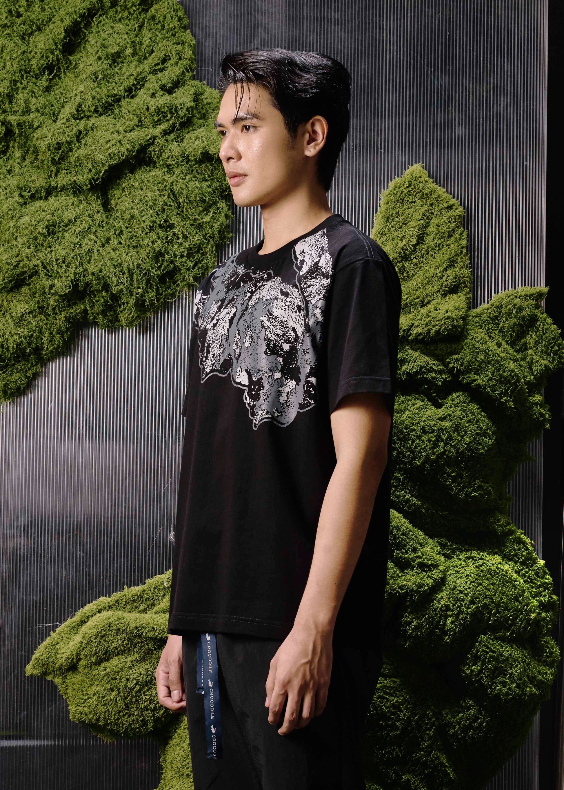 BLACK OVERSIZED CREW NECK SHORT SLEEVE T-SHIRT WITH GRAPHIC PRINT