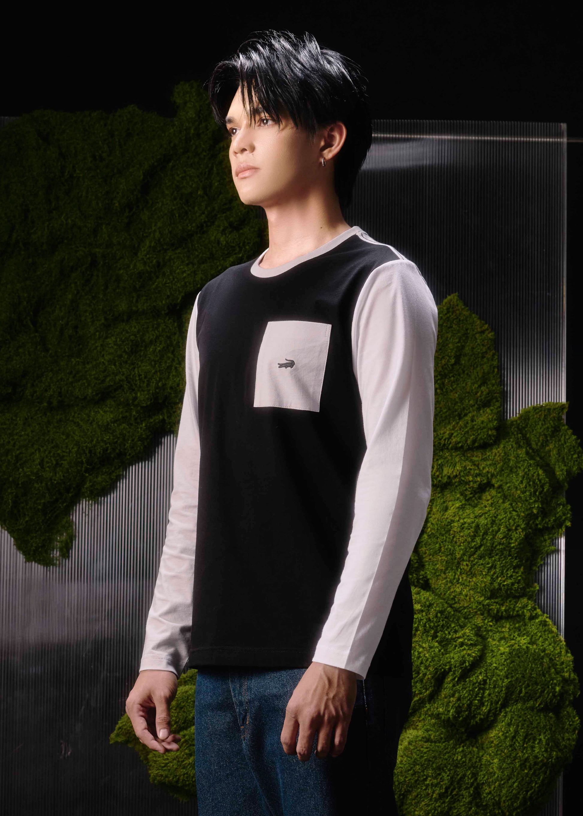 BLACK COLOUR BLOCK CUSTOM FIT CREW NECK LONG SLEEVE T-SHIRT WITH CHEST POCKET