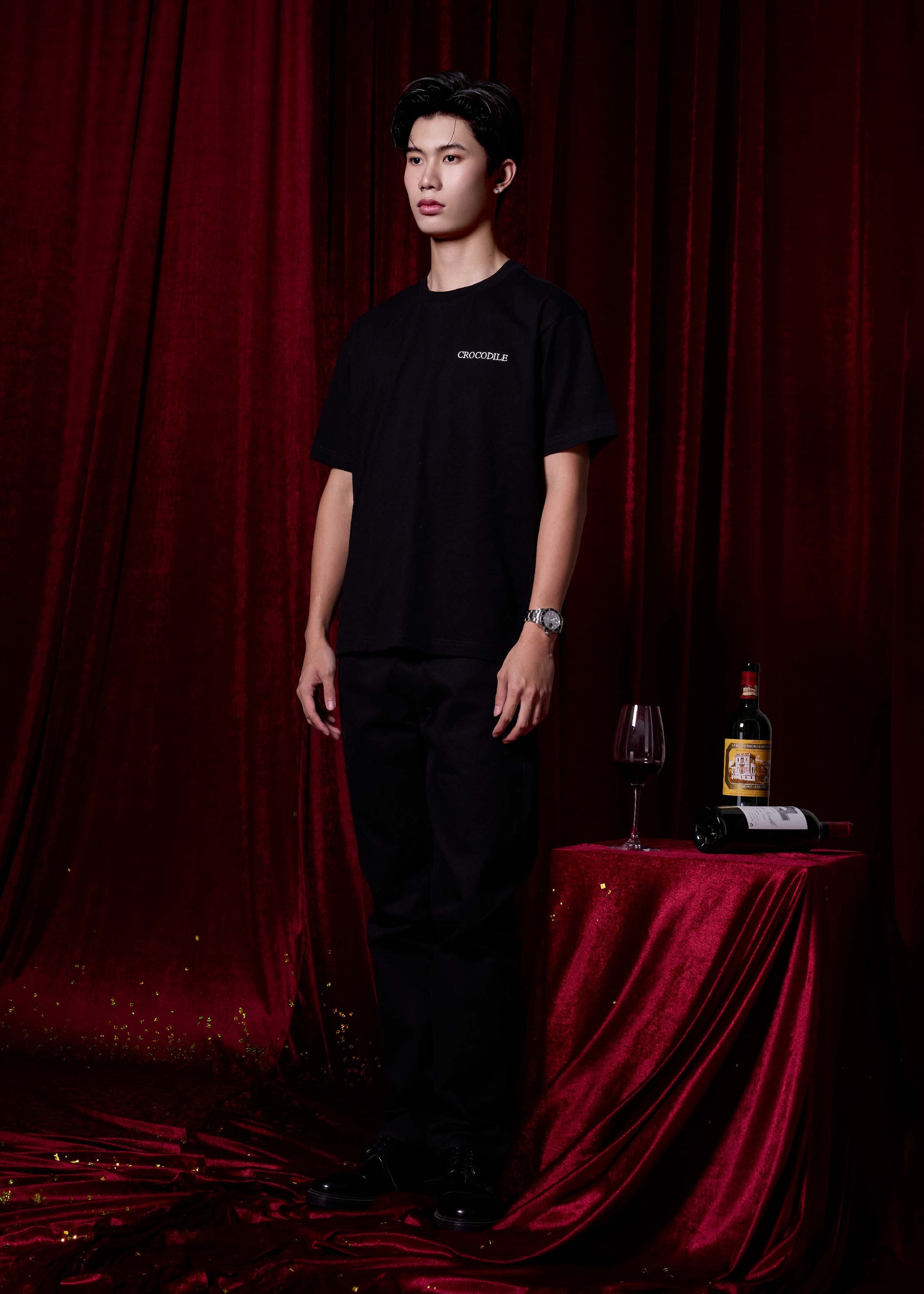 BLACK OVERSIZED CREW NECK SHORT SLEEVE T-SHIRT WITH GRAPHIC PRINT