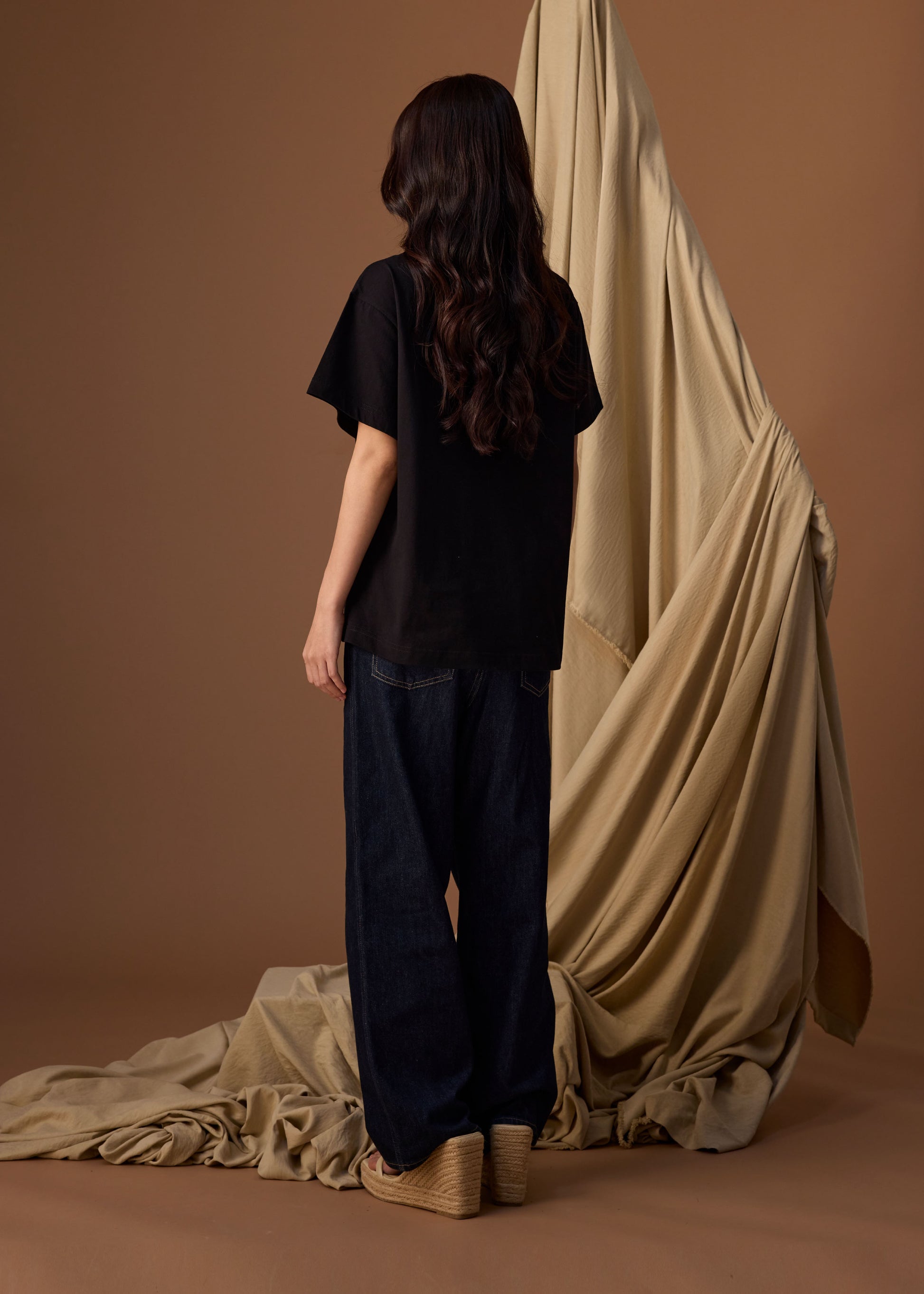 BLACK OVERSIZED FIT CREW NECK SHORT SLEEVE T-SHIRT WITH GRAPHIC PRINT