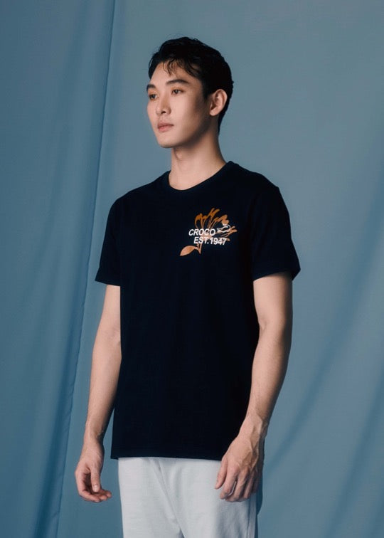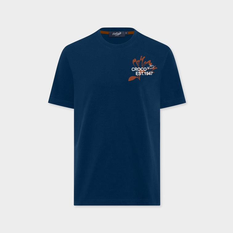 NAVY CUSTOM FIT CREW NECK SHORT SLEEVE T-SHIRT WITH GRAPHIC PRINT