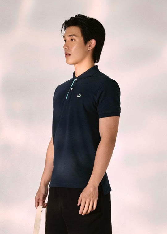NAVY CUSTOM FIT POLO SHIRT WITH RUBBERIZED LOGO