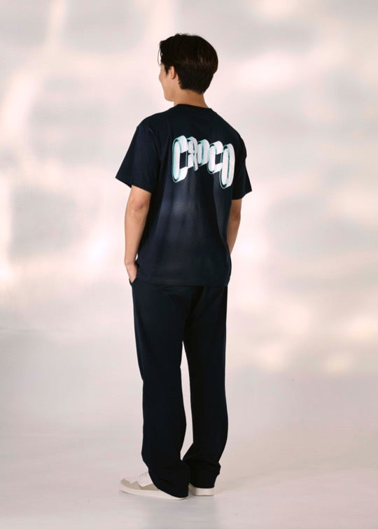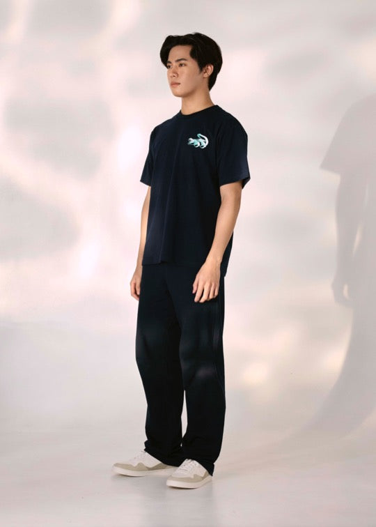 NAVY OVERSIZED FIT CREW NECK SHORT SLEEVE T-SHIRT WITH GRAPHIC PRINT