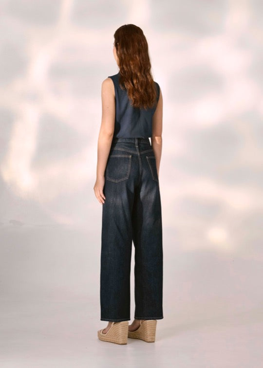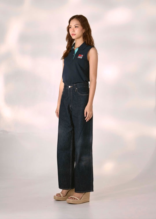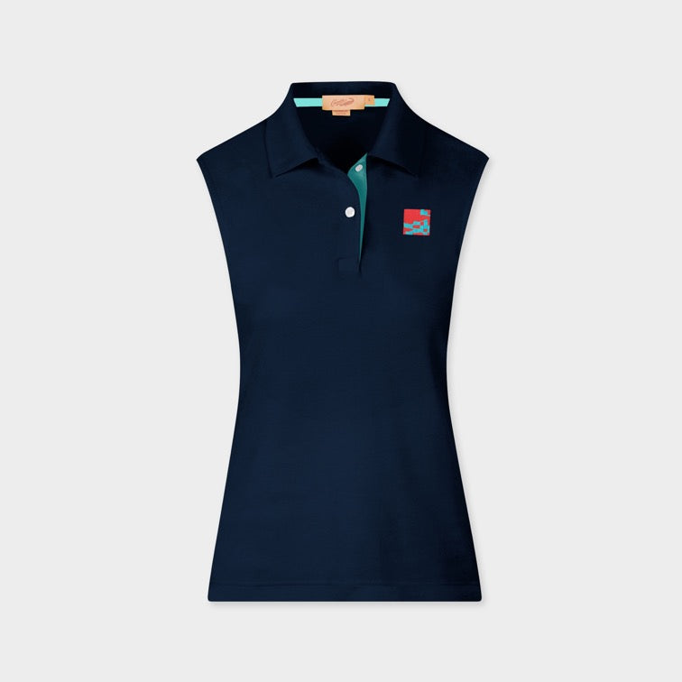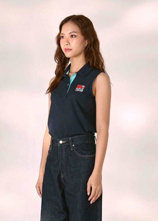 NAVY WOMEN TAPERED FIT SLEEVELESS POLO WITH EMBROIDERY