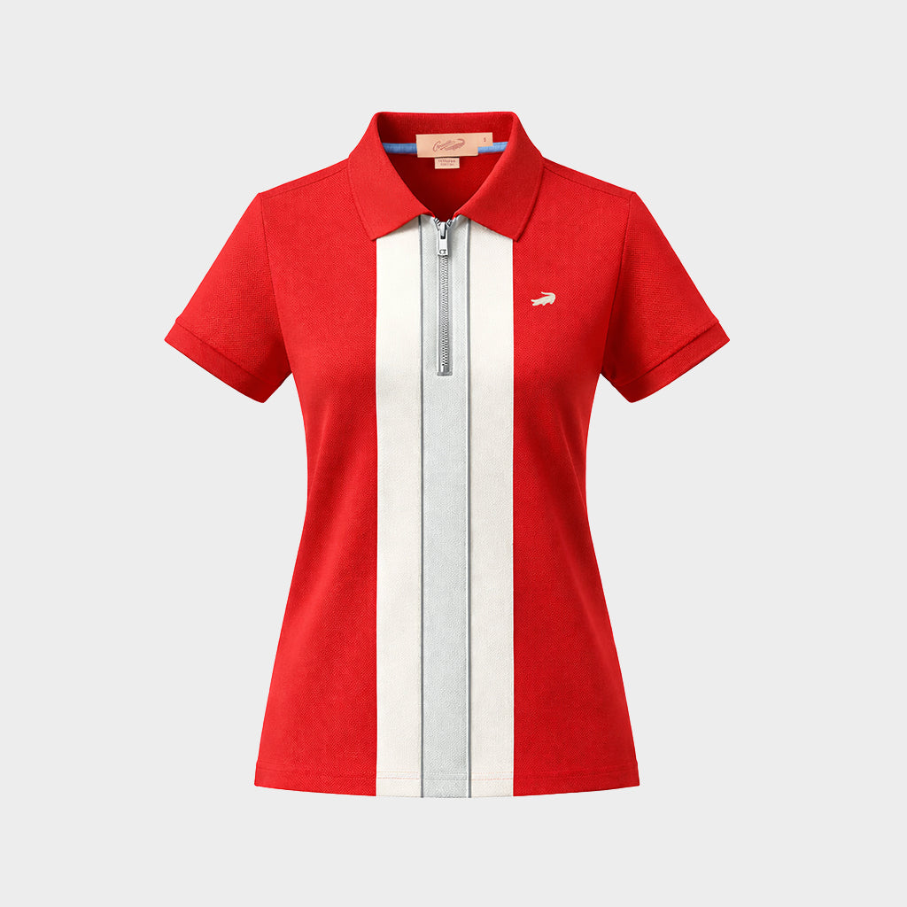 LAVA RED COLOUR BLOCK WOMEN TAPERED FIT POLO SHIRT WITH ZIP PLACKET
