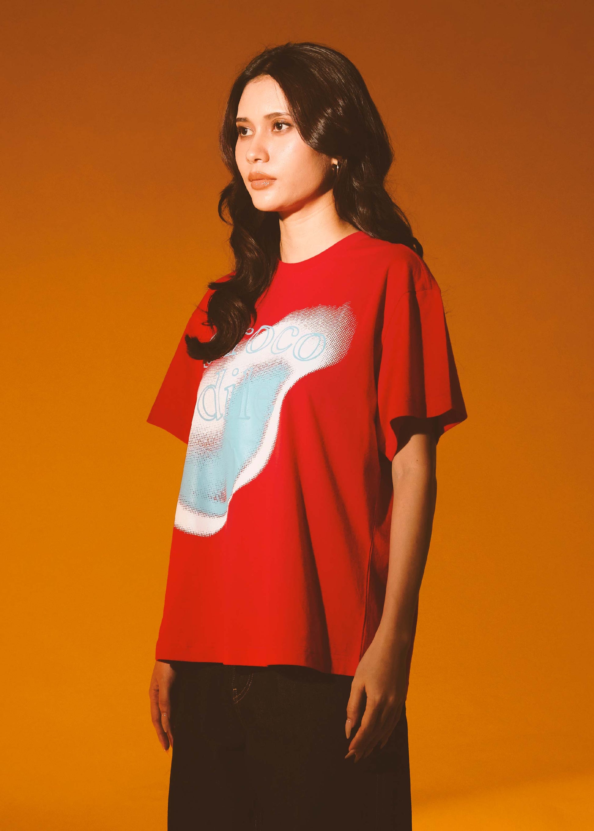 LAVA RED OVERSIZED FIT CREW NECK SHORT SLEEVE T-SHIRT WITH GRAPHIC PRINT