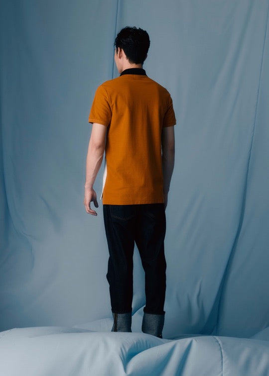 PUMPKIN SPICE COLOUR BLOCK CUSTOM FIT POLO SHIRT WITH BLACK COLLAR