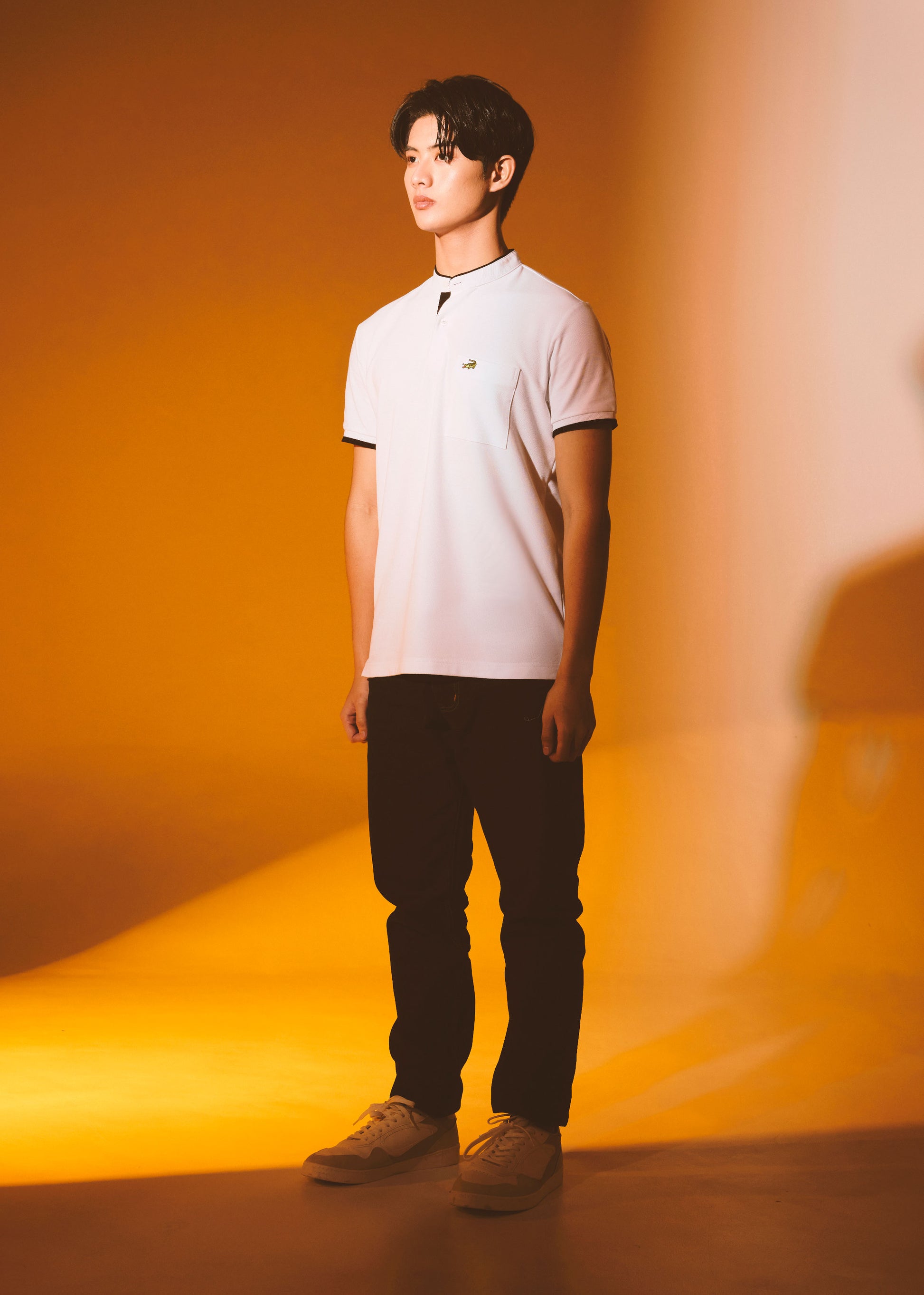 WHITE COLOUR BLOCK BOMBER COLLAR CUSTOM FIT POLO SHIRT