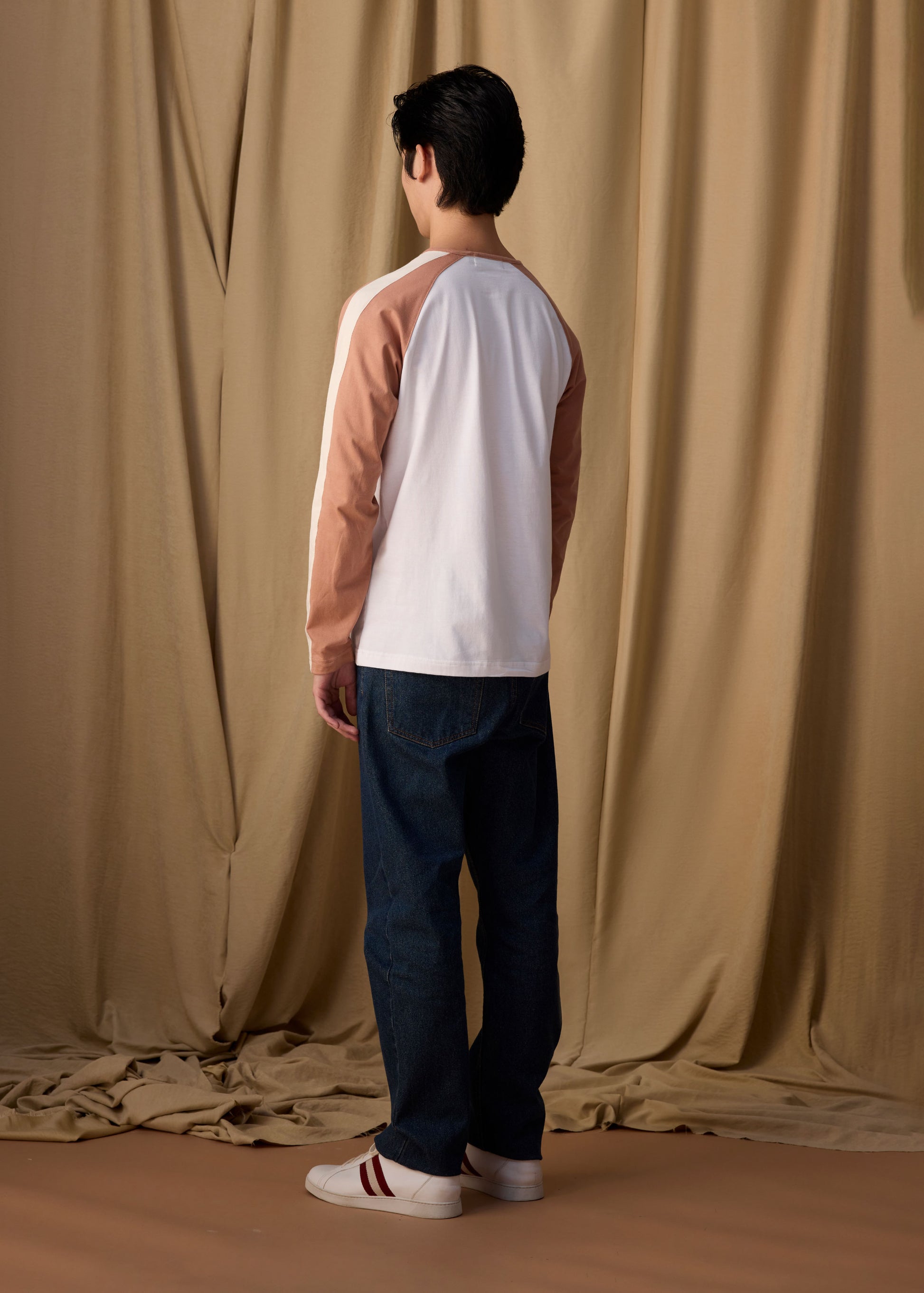 WHITE COLOUR BLOCK CUSTOM FIT HENLEY LONG SLEEVE T-SHIRT