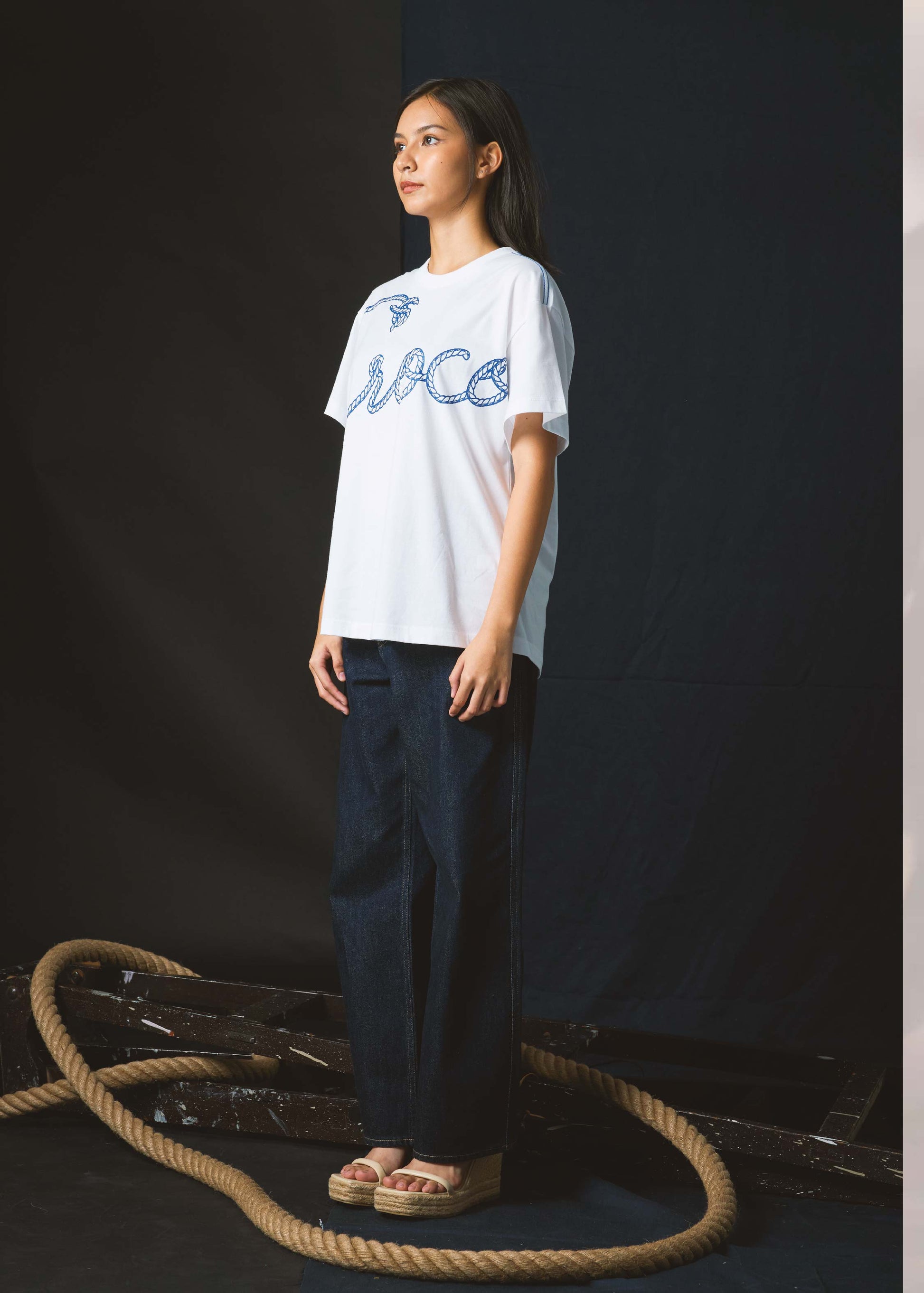 WHITE WOMAN OVERSIZED CREW NECK
