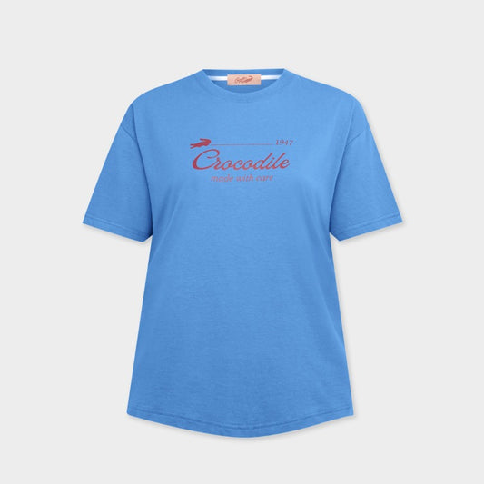 เสื้อยืดคอกลมแขนสั้นสีฟ้าเอเซอร์ทรงโอเวอร์ไซส์ฟิตพร้อมลายกราฟฟิก