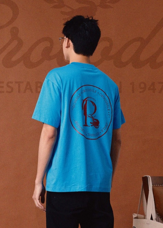 เสื้อยืดคอกลมแขนสั้นสีฟ้าเอเซอร์ทรงโอเวอร์ไซส์ฟิตพร้อมลายกราฟฟิก