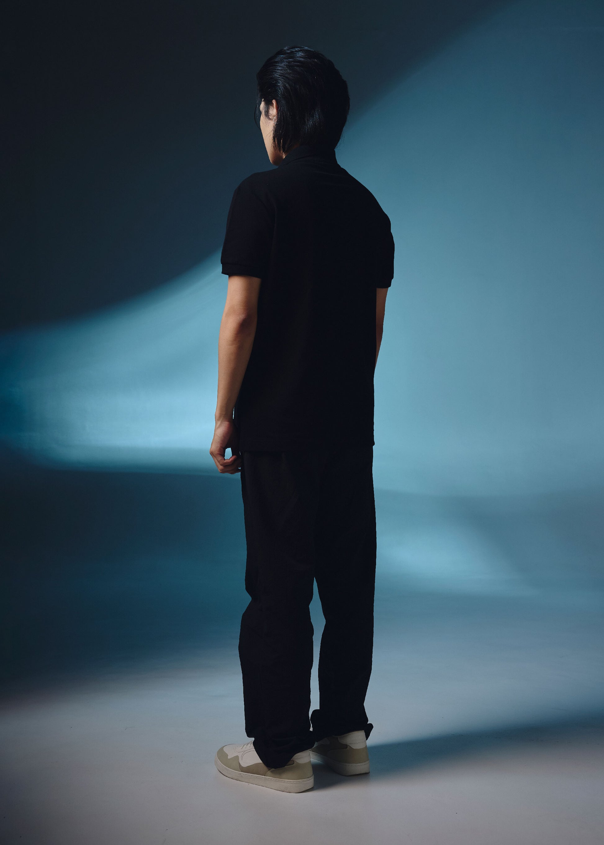 เสื้อโปโลทรงคัสตอมฟิตสีดำพร้อมลายปัก