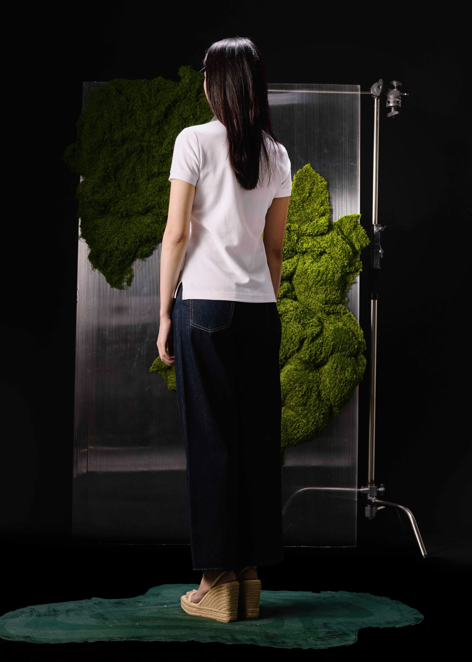 เสื้อโปโลสีขาวทรงเข้ารูปปกเขียวเมจิคัลฟอเรสต์พร้อมลายปัก