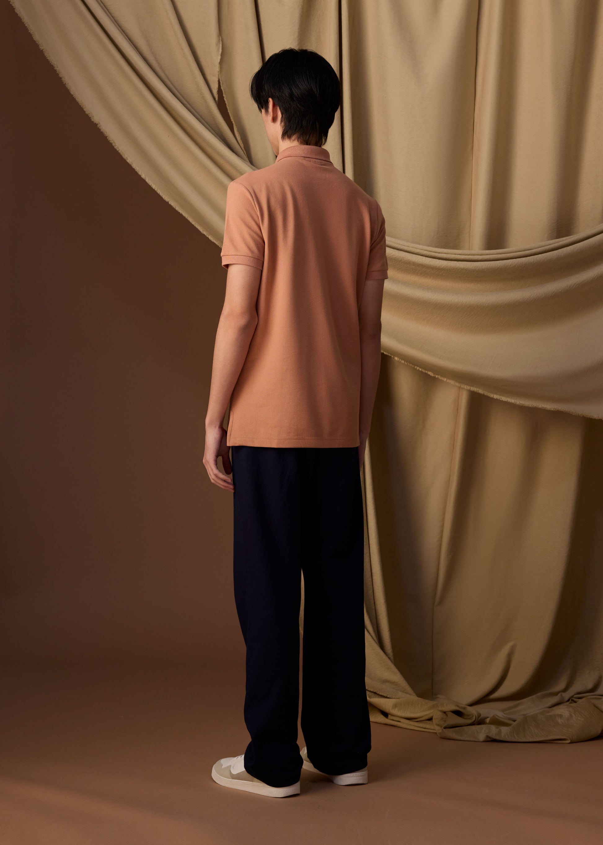 เสื้อโปโลทรงคัสตอมฟิตสีนำ้ตาลมอคค่ามูสพร้อมลายปัก