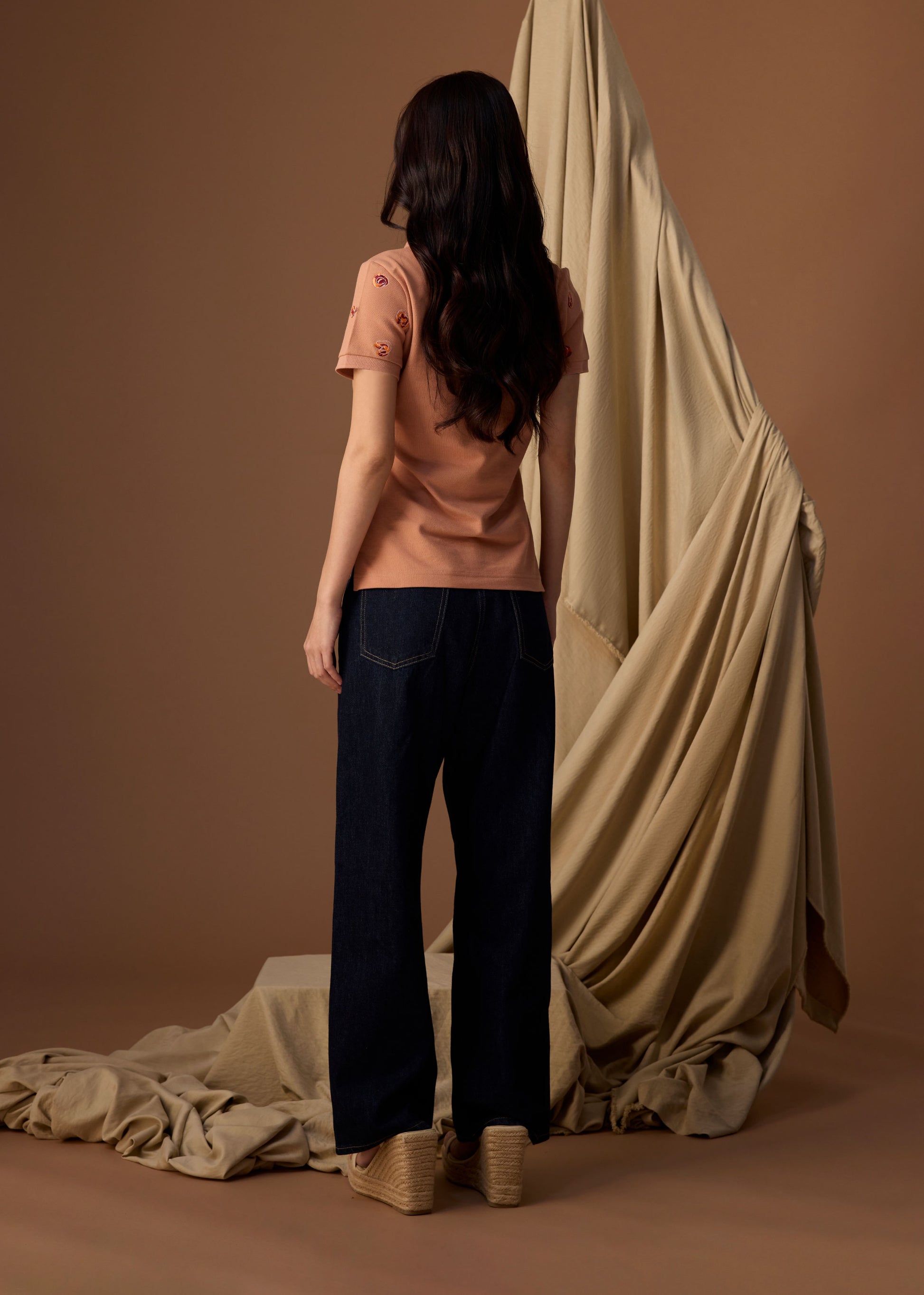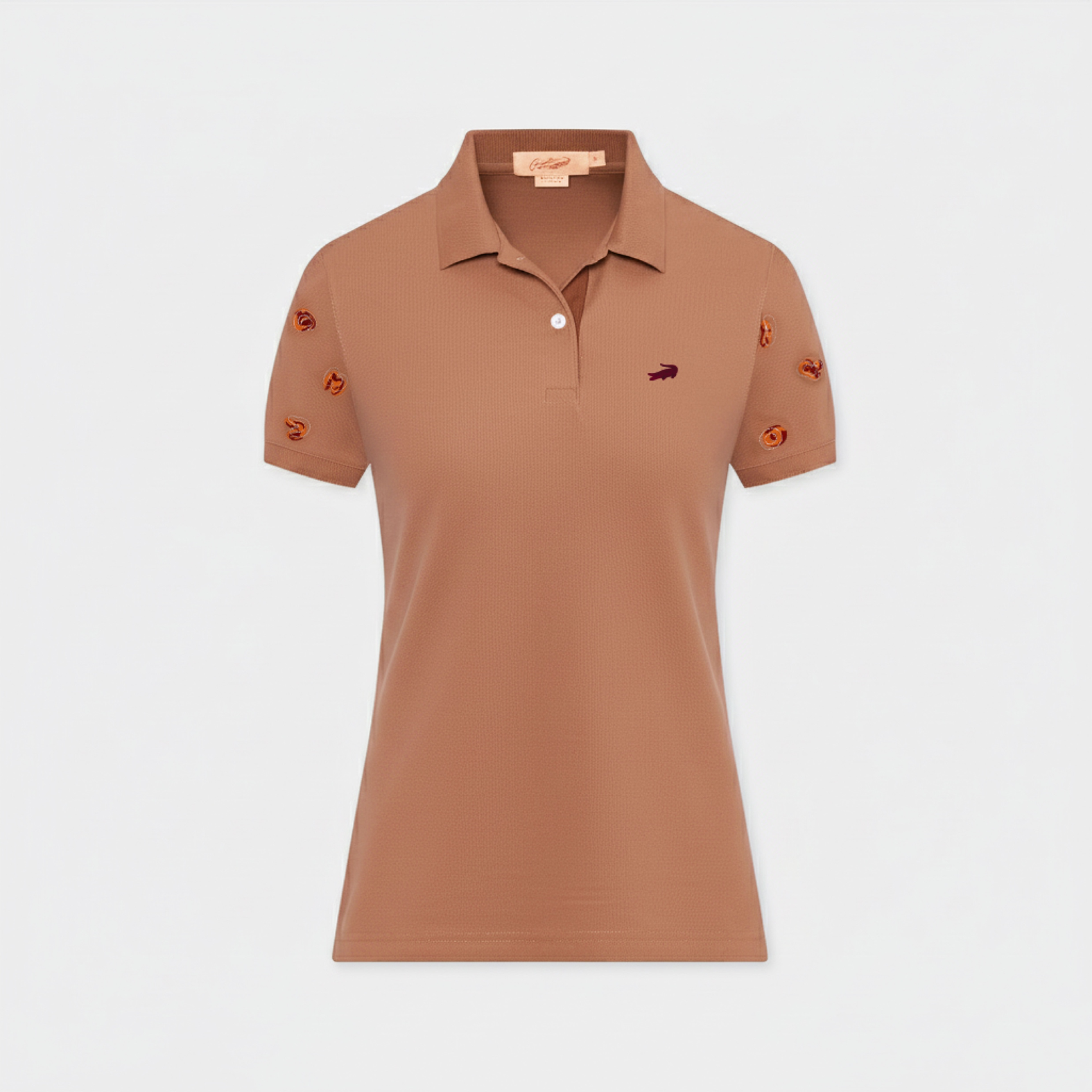 เสื้อโปโลทรงเข้ารูปสีนำ้ตาลมอคค่ามูสพร้อมลายปัก