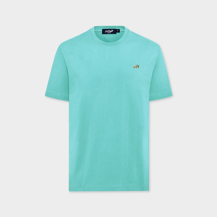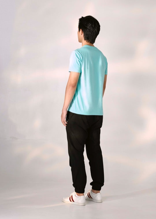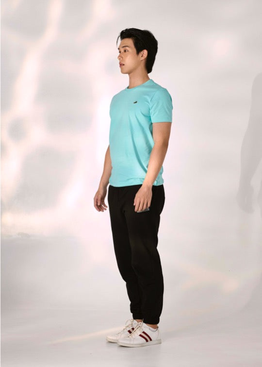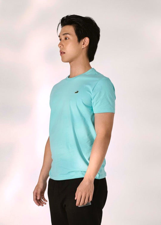 เสื้อยืดคอกลมแขนสั้นสีเขียวบลูพูลทรงคัสตอมฟิต