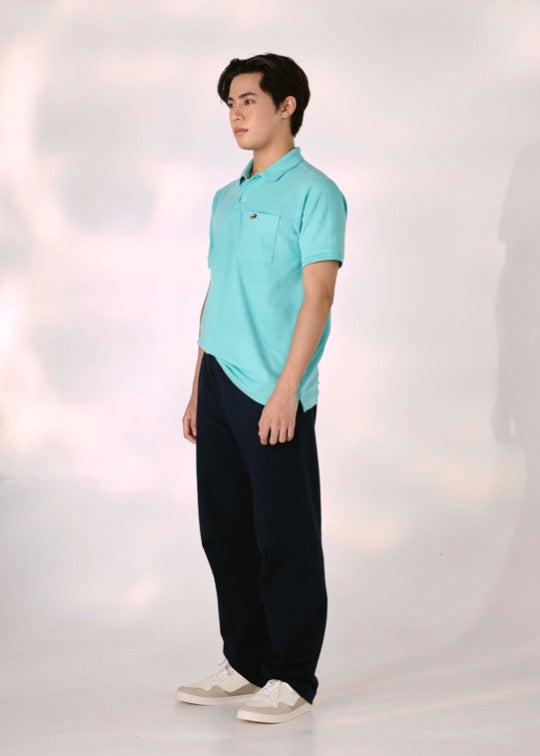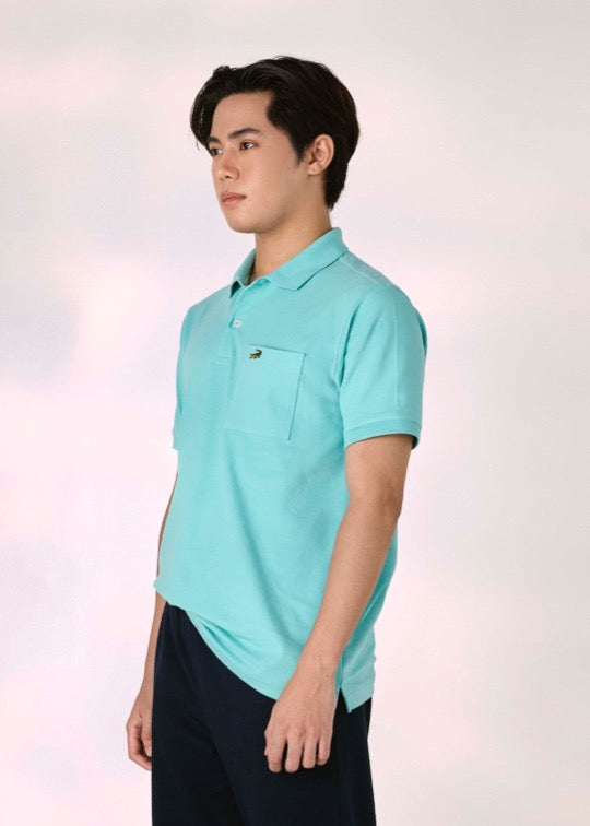 เสื้อโปโลสีเขียวบลูพูลทรงเรกูล่าร์ฟิต
