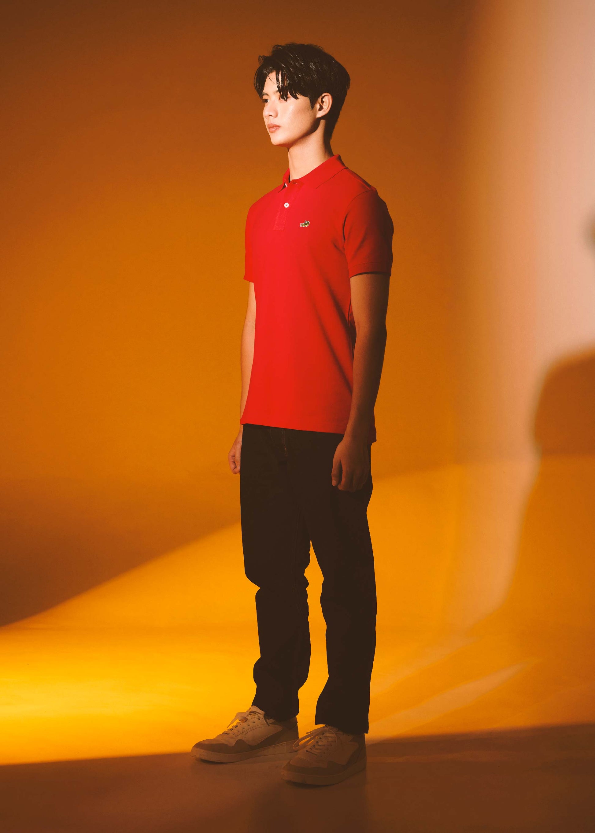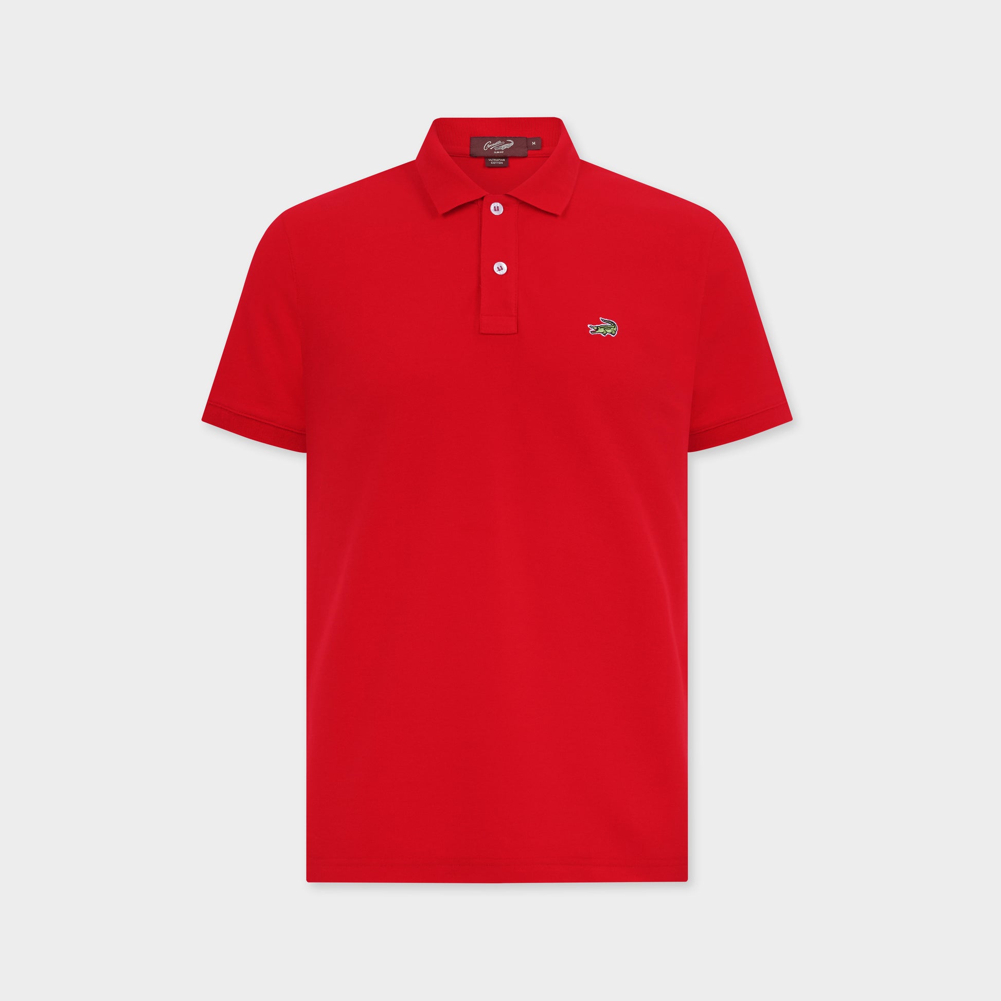 เสื้อโปโลสีแดงลาวาทรงสลิมฟิต