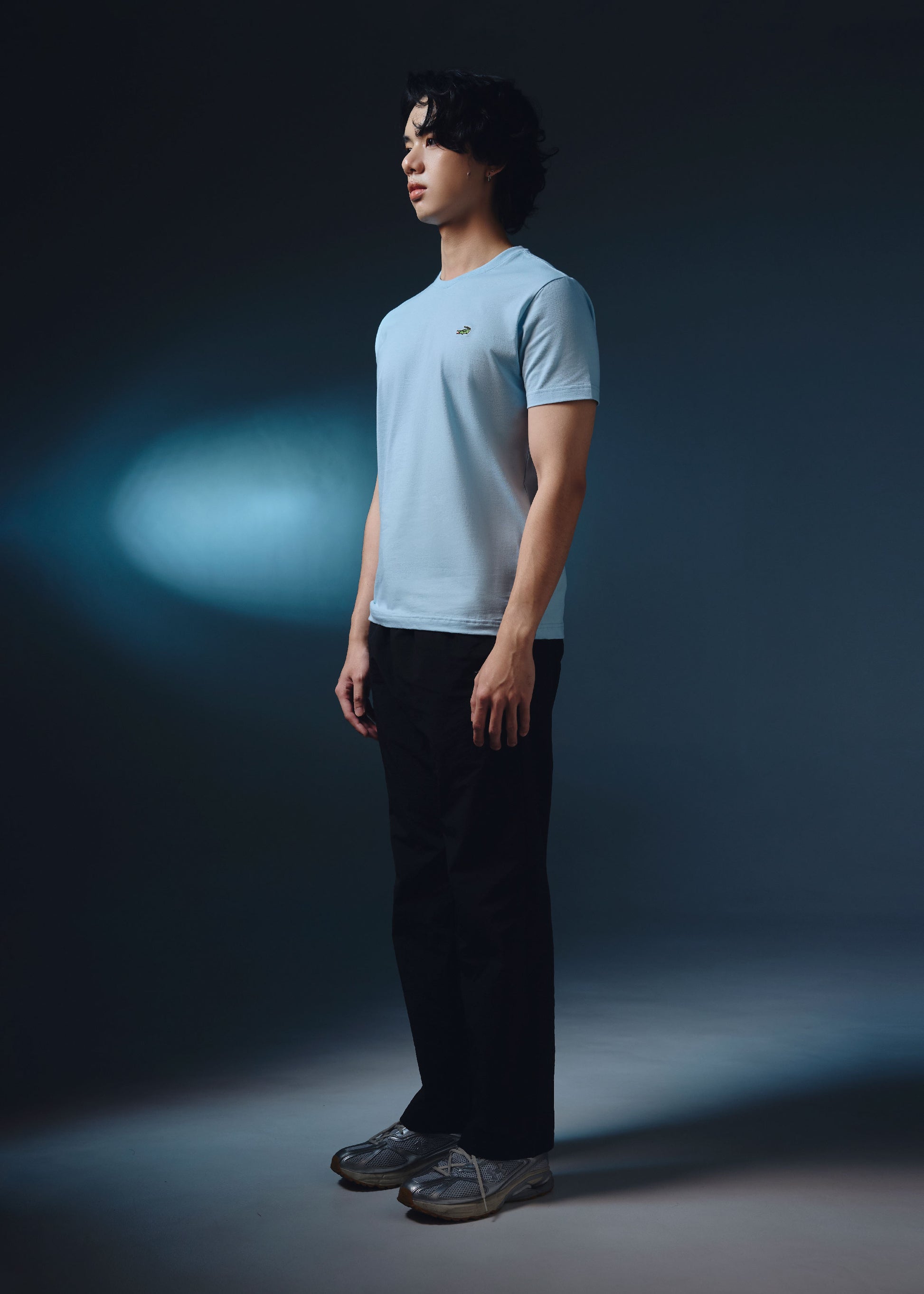 เสื้อยืดคอกลมสีสตาร์ไลท์บลูทรงคัสตอมฟิต