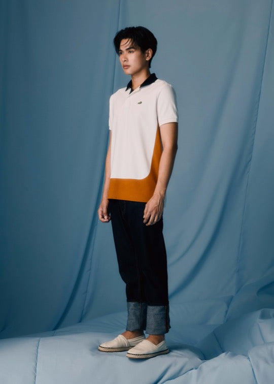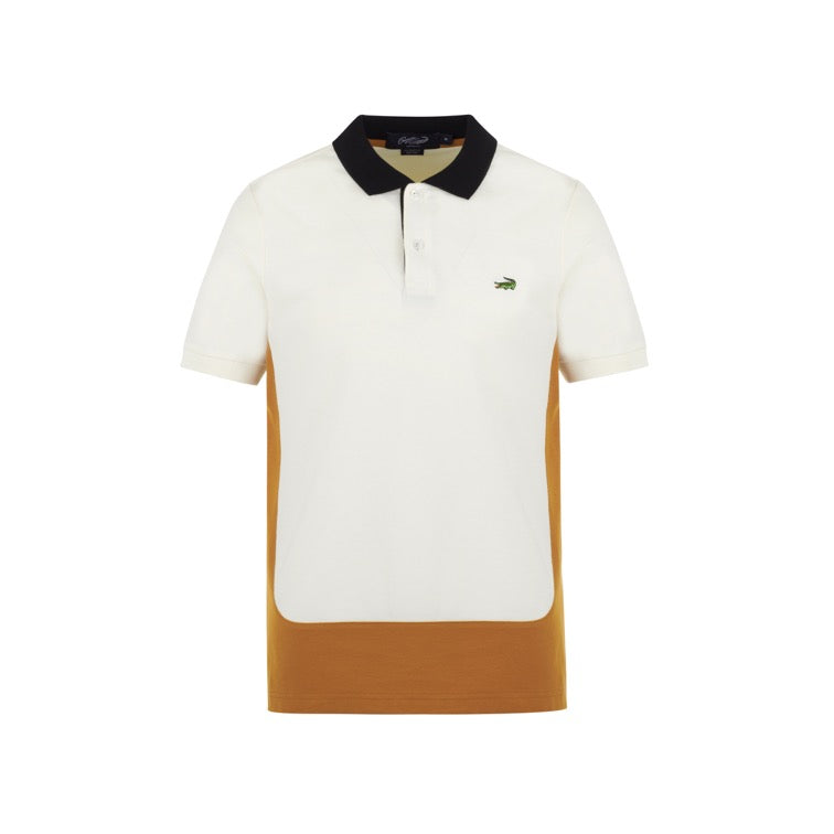 เสื้อโปโลสีขาวคัลเลอร์บล็อคทรงคัสตอมฟิตปกดำ