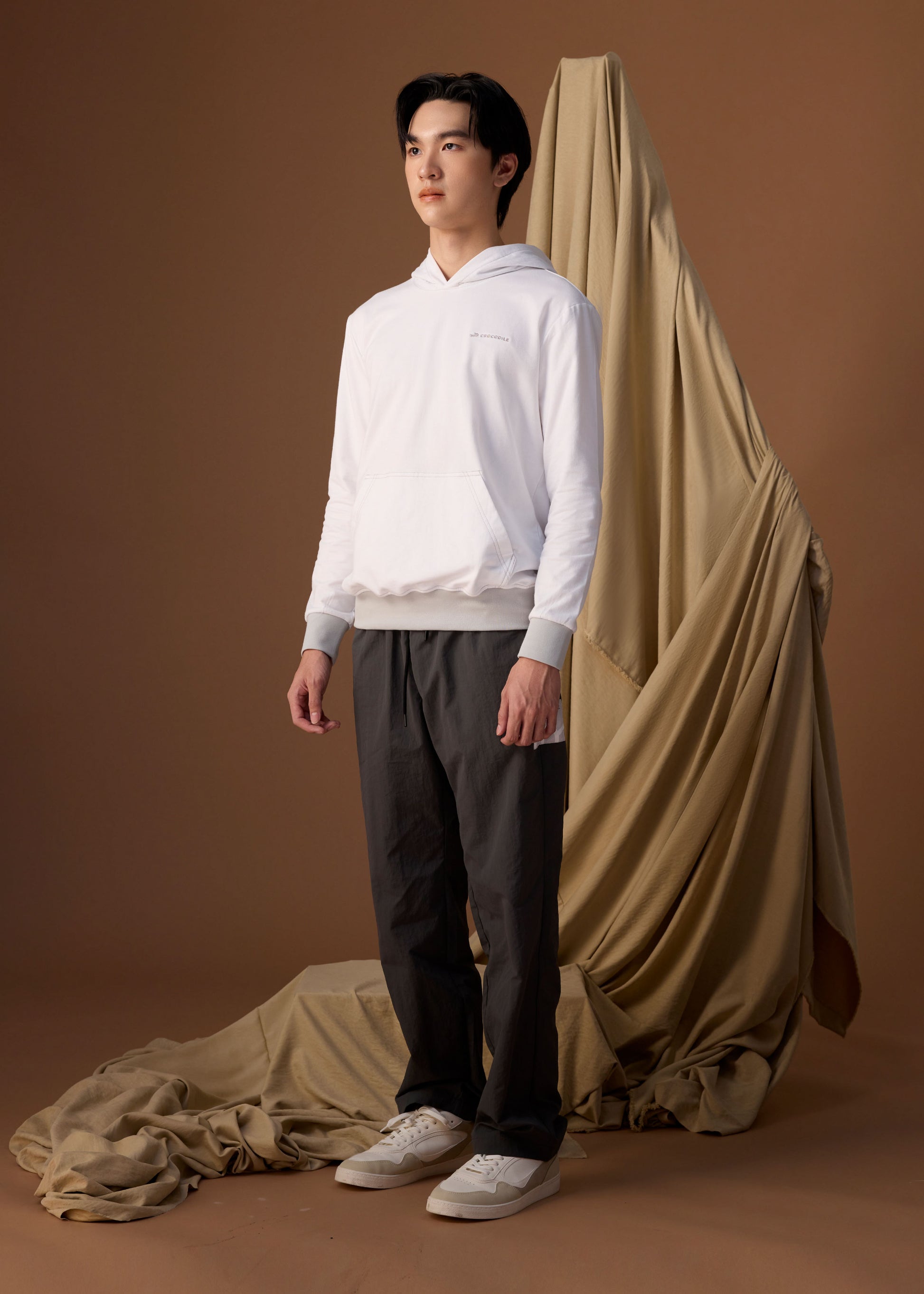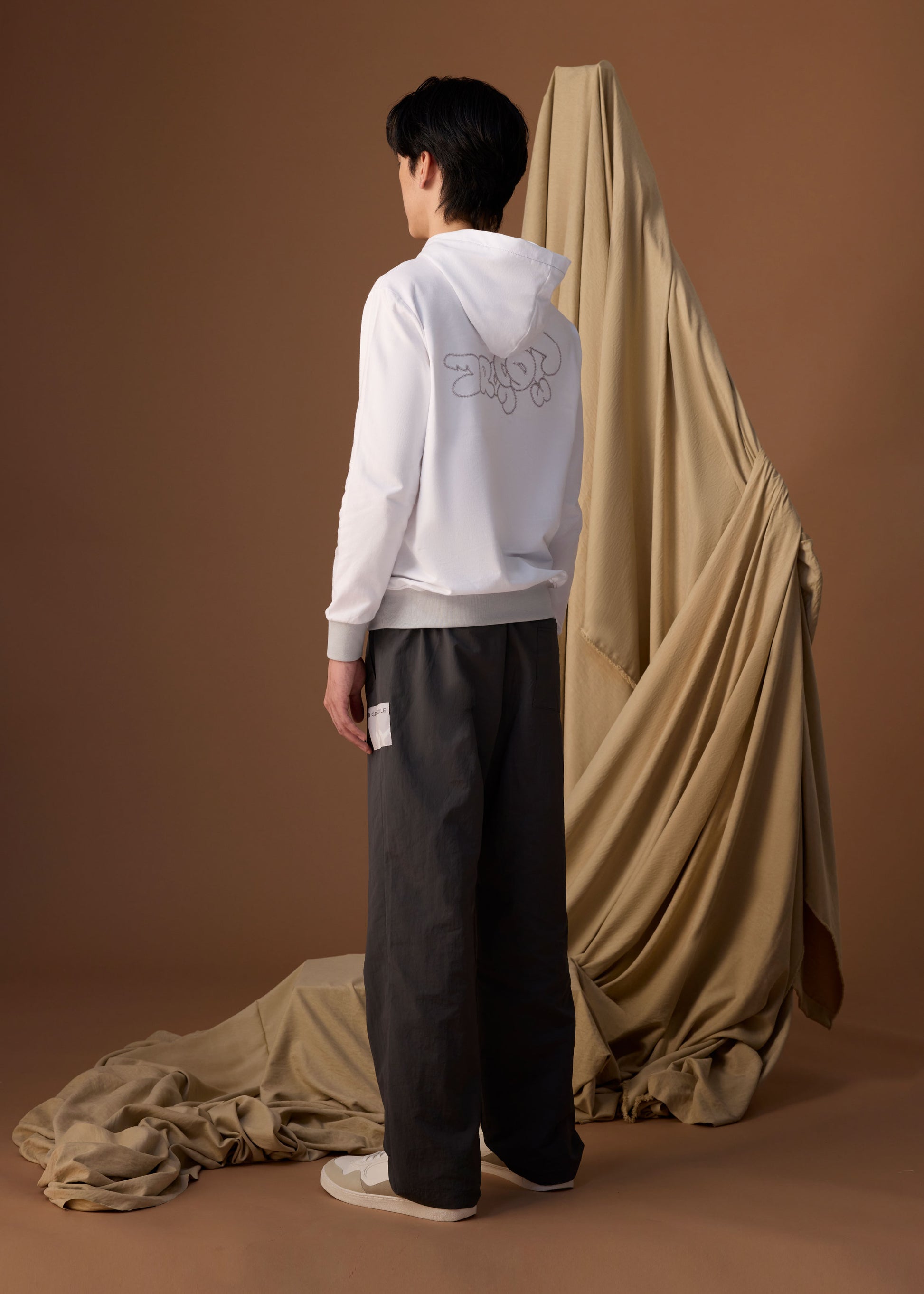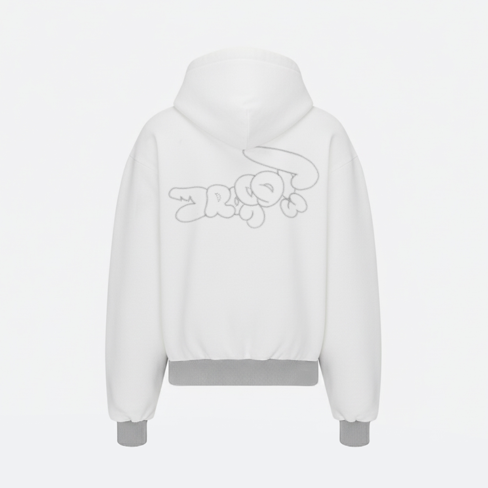 ฮู้ดทรงคัสตอมฟิตสีขาวพร้อมลายปัก