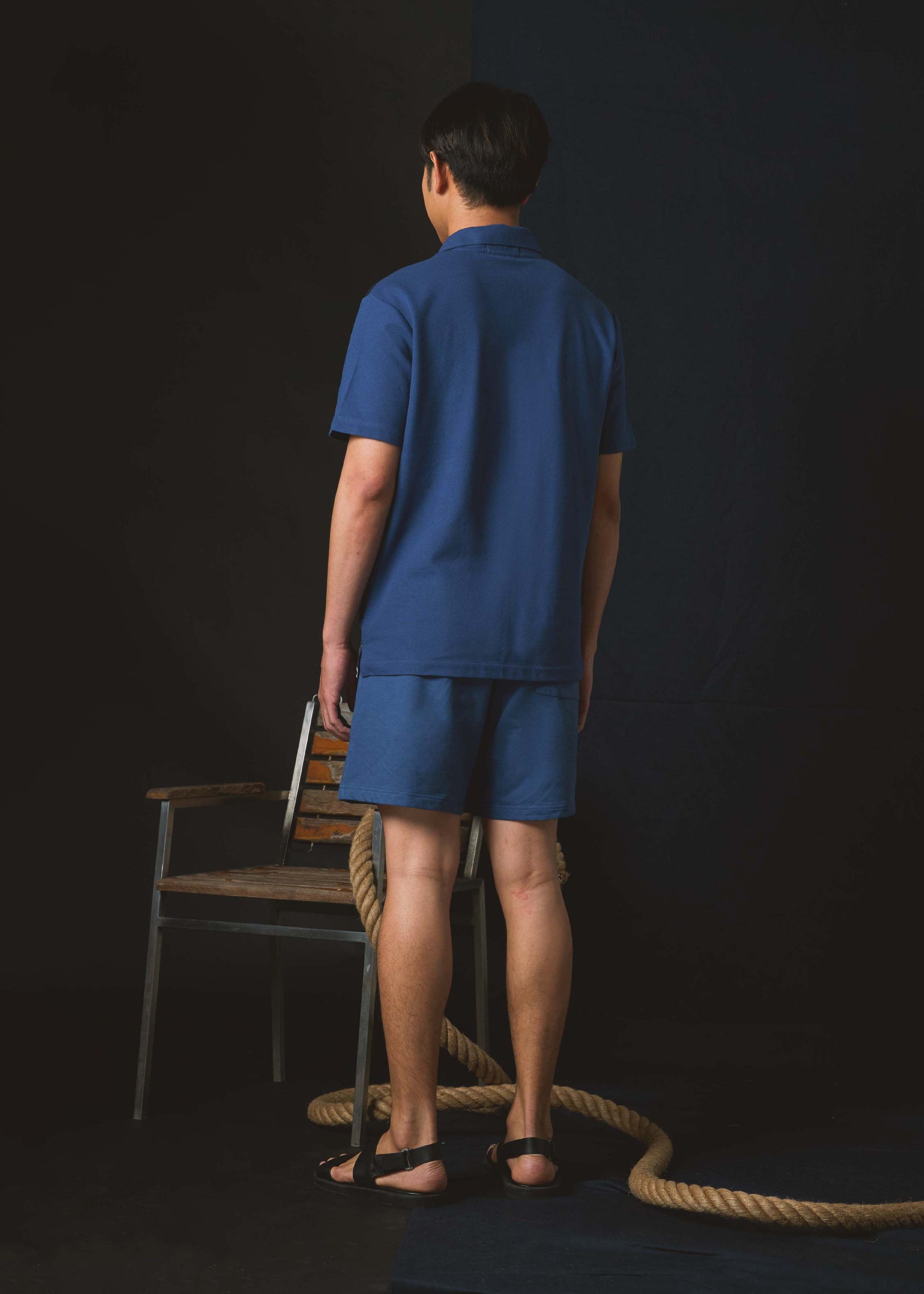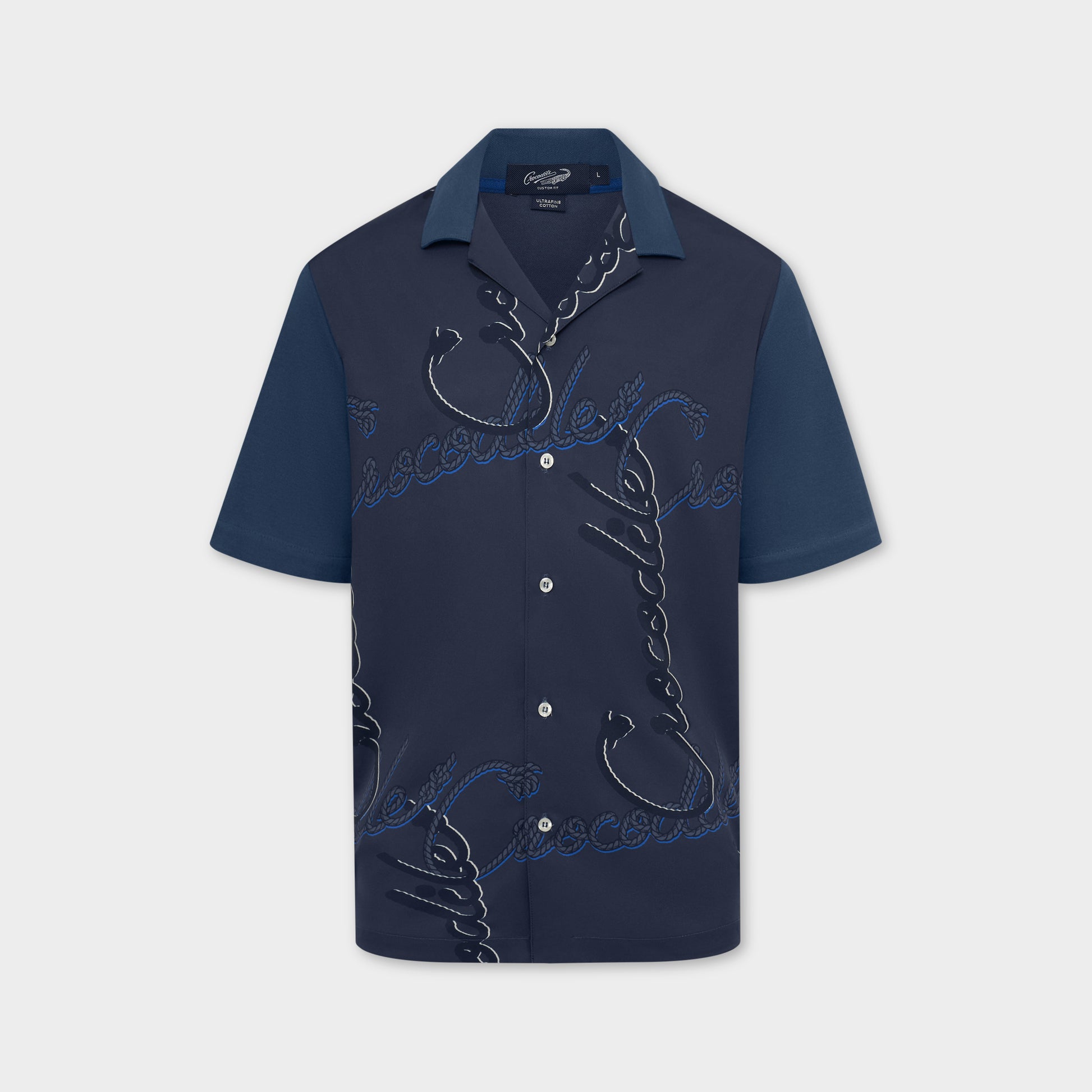 FABRIC PRINT NAVAL ACADEMY BLUE CUSTOM FIT CUBAN COLLAR SHIRT